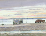 Fishing at Sunset Description: Fishermen after striper or blues bring their pick-up trucks and dog to the beach in the evening.This view was from Cahpin Beach in Dennis. THREE LEFT |